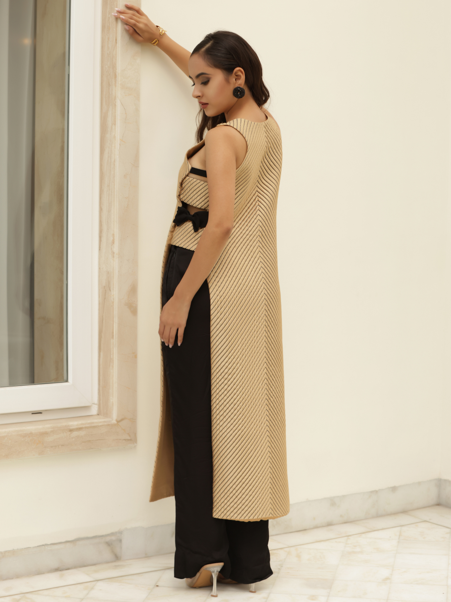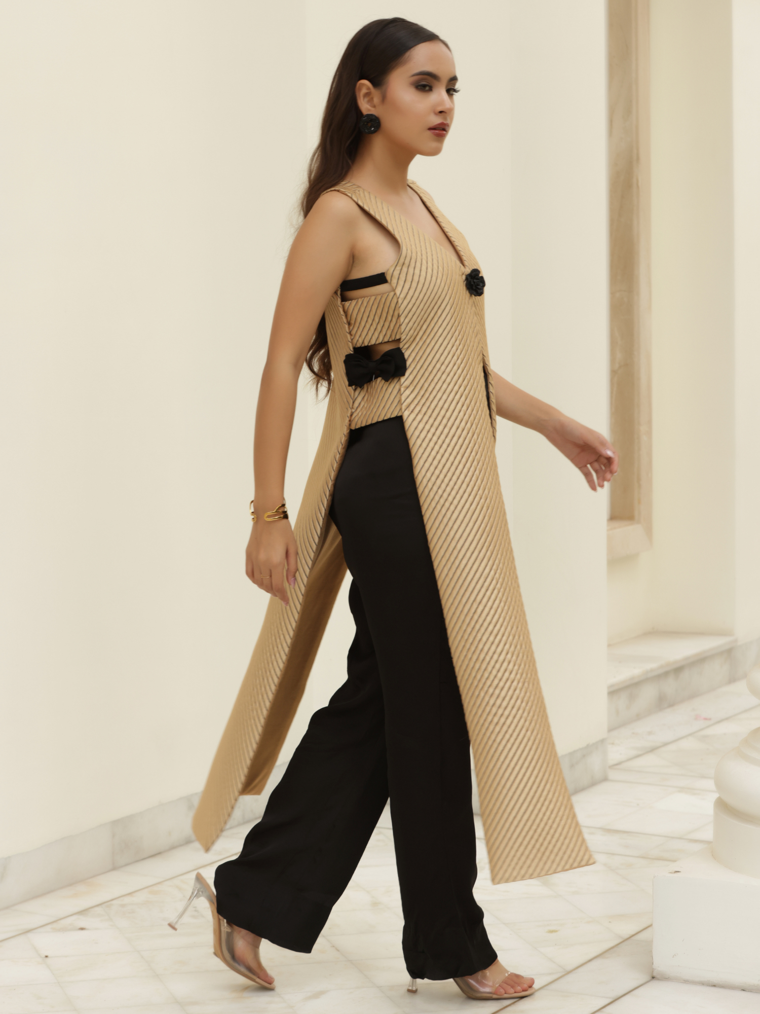 Rich silk gold jacket with embroidered black stripes,silk plazzo