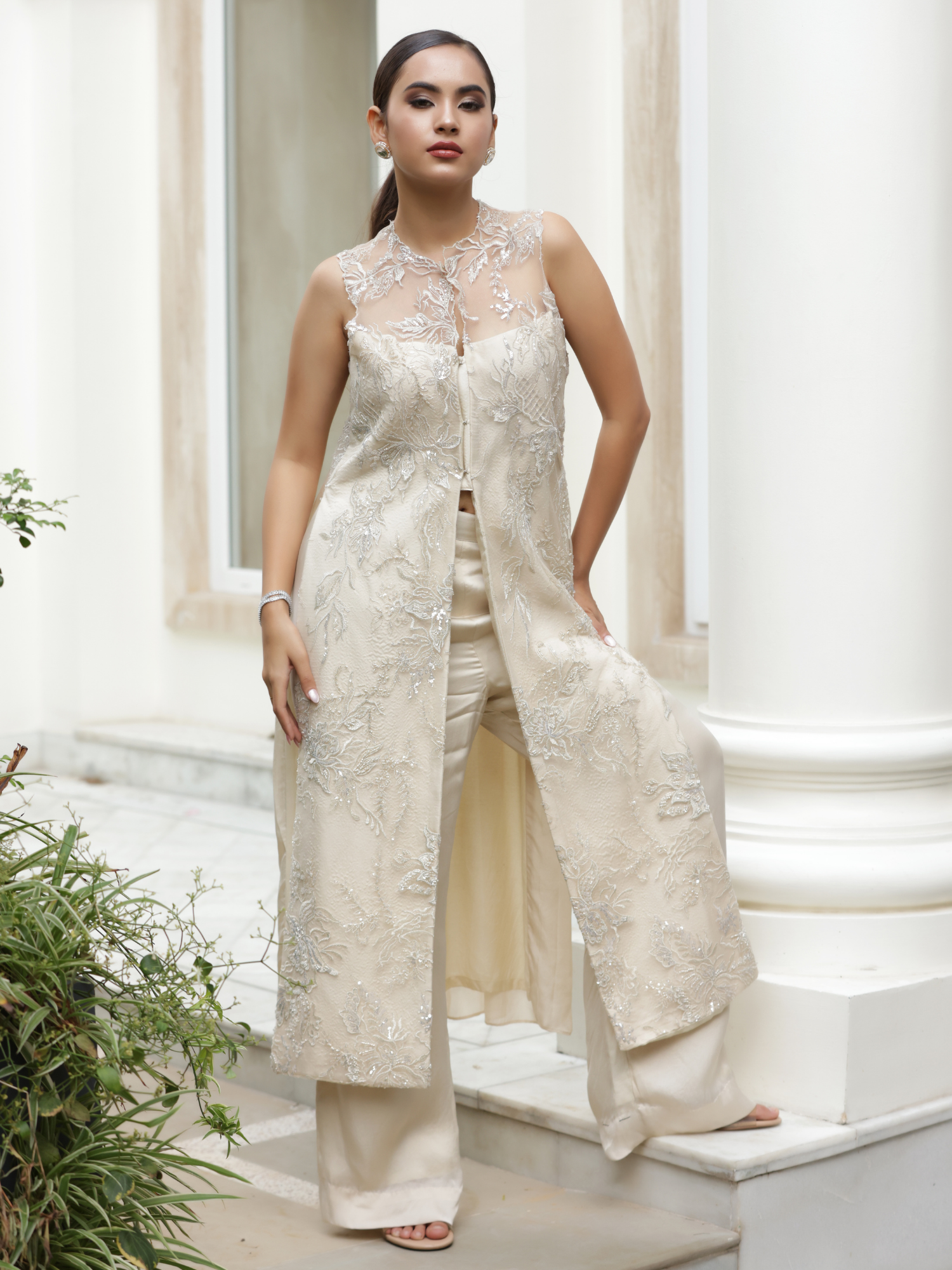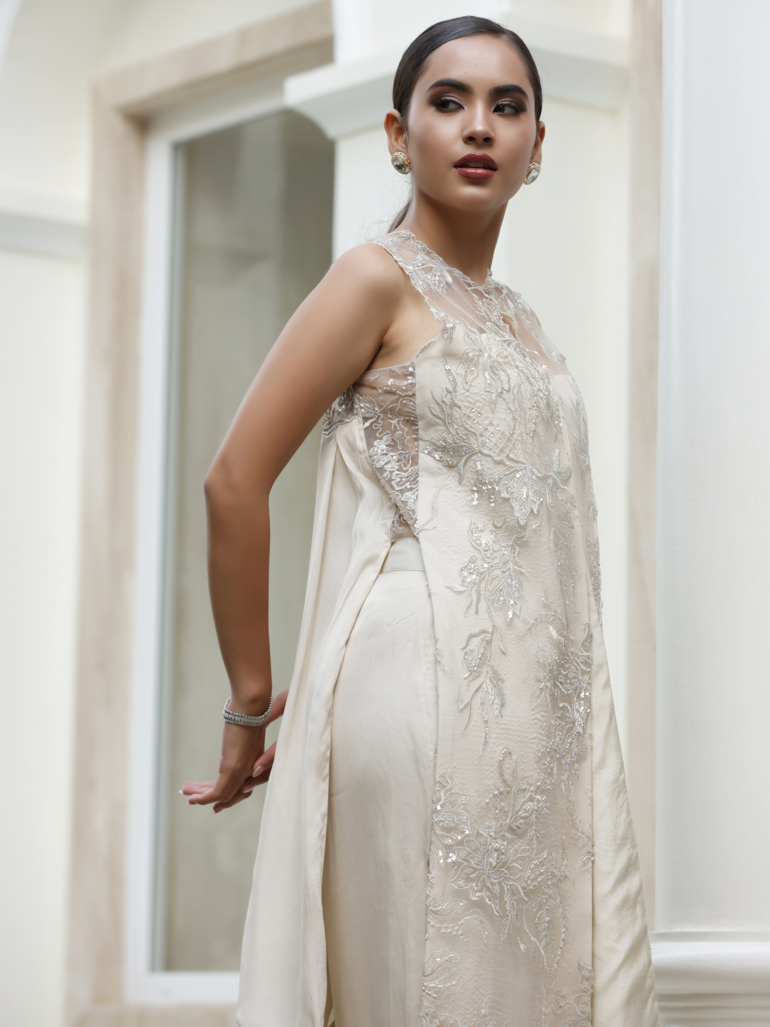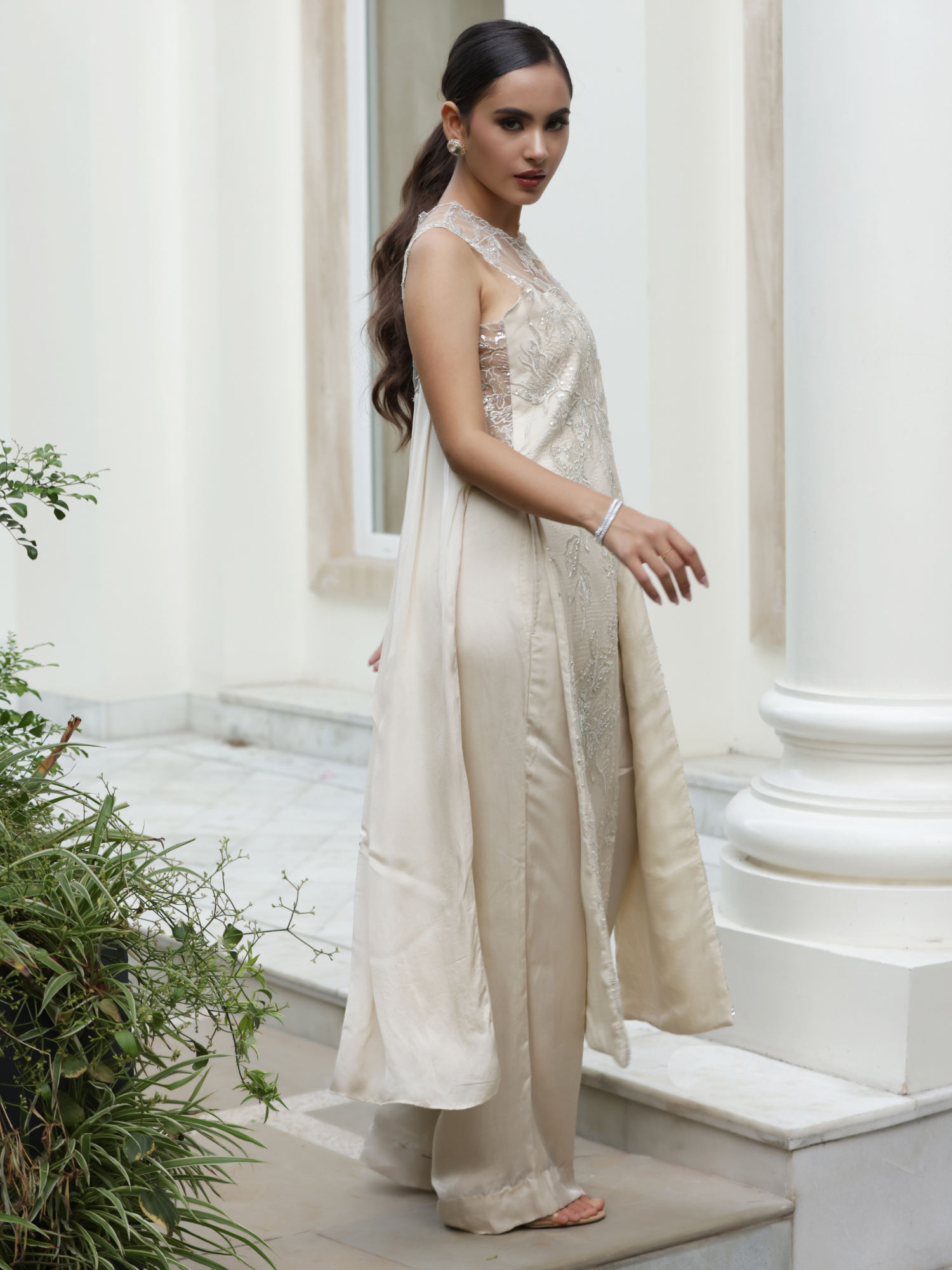 Heavy embroidered with sequence and kardana work on the front and back , silk back and silk plazzo , beautiful work on sides and back